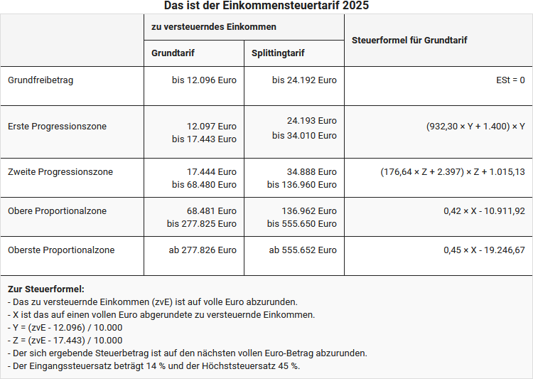 Der Einkommensteuertarif 2025